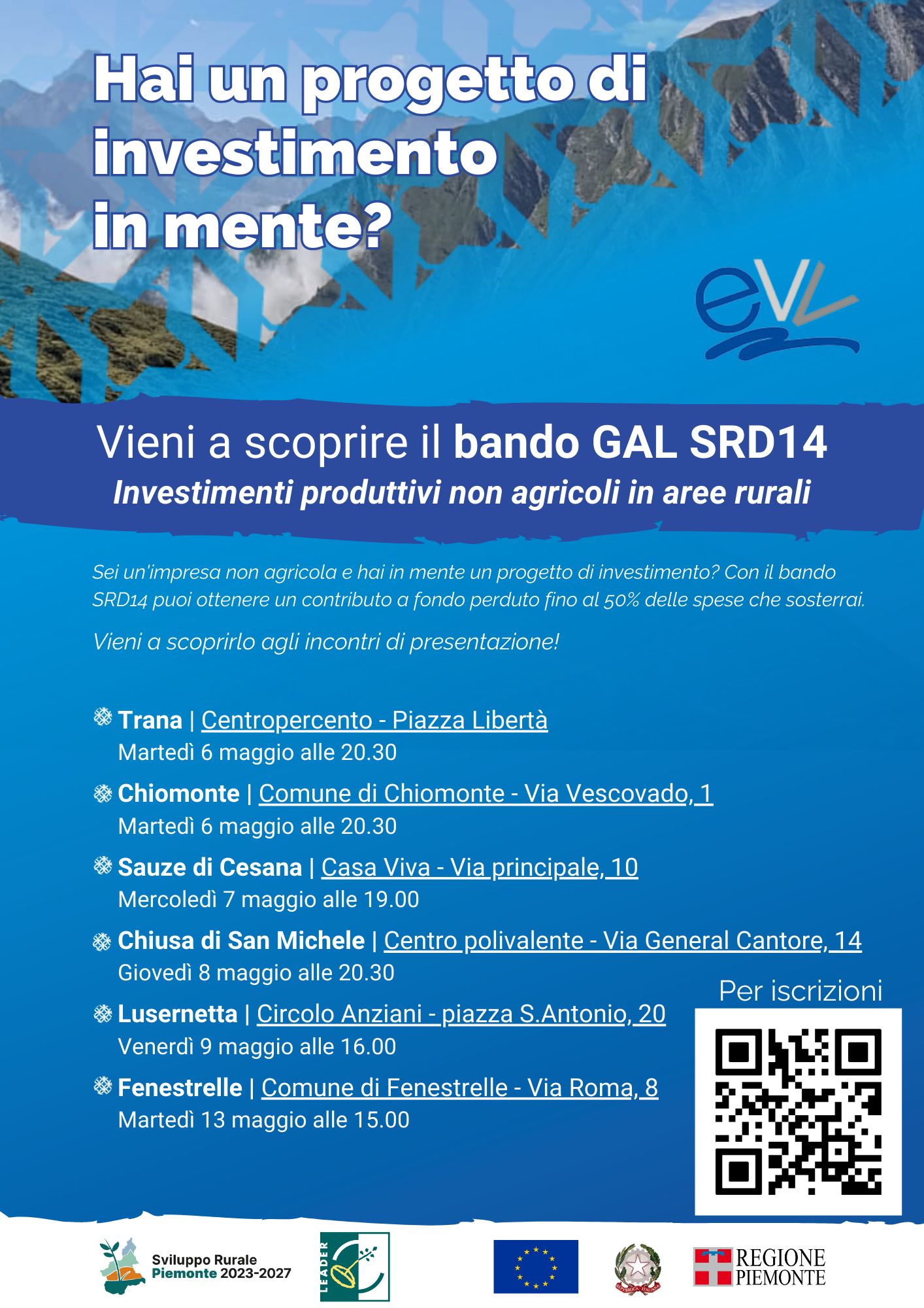 Aperto il bando pubblico SRD14 del GAL EVV Investimenti produttivi non agricoli in area rurale