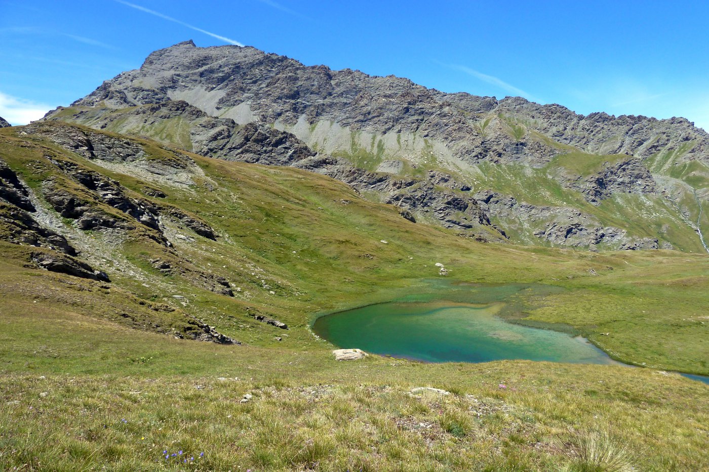 Si scende per detriti e roccette tenendosi alti a mezza costa, direzione Colle Mayt (2700 m), che si raggiunge im 30'.